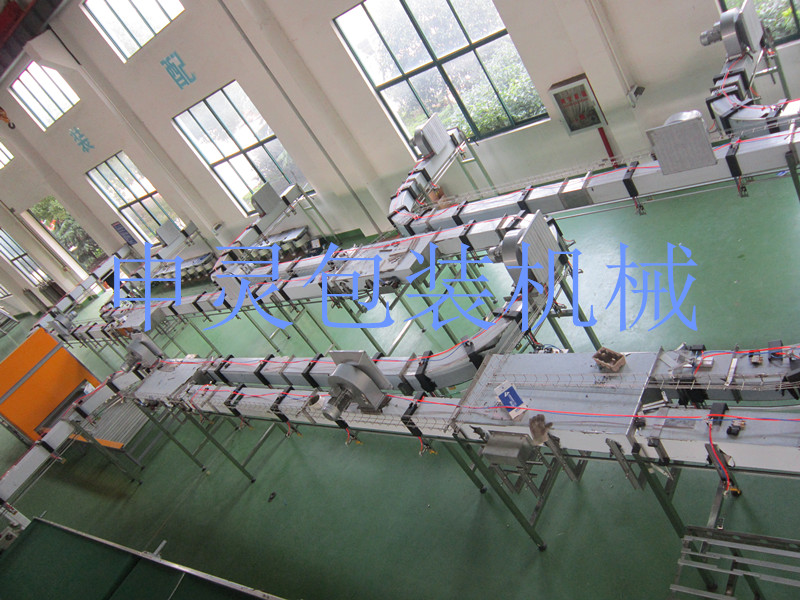 PET空瓶(衛生型)風道輸送線 PET空瓶(衛生型)風道輸送線是利用風機的風能作為輸送動力,配以儲風的輸瓶風道,實現了從吹瓶機生產出來的空瓶直接輸送到灌裝機或貼標機進行灌裝或貼標。風道主體結構件均采用304不銹鋼制作,能抵抗各種弱酸、弱堿等腐蝕,風道卡瓶條為超高分子聚乙烯材料,摩擦阻力小,耐磨強度高,能保證較長的使用壽命。整線電氣系統采用PLC、人機界面、變頻器和光電傳感器控制。它能夠減少空瓶的二次污染,節省包裝成本和節約人工費用。該系統具有節能、結構緊湊、外型美觀、控制簡便、易調整、易清潔等特點,符合食品、包裝行業的衛生要求,是一種理想的輸瓶機械設備。 PET空瓶風道輸送線由風機動力裝置、直行風道、轉彎風道、上下坡風道、分合流裝置、落瓶裝置以及夾瓶裝置等結構組成。 技術參數: 名稱 數值 備注 整線生產能力 >60000BPH 以600ml空瓶計算 風道輸瓶速度 2.5~6m/s 以600ml空瓶計算 風道輸瓶單只最大重量 120g 風機功率 2.2KW 2880rad/Min 風量 2840m3/h 配變頻器調節 風壓 600~1000Pa相關產品